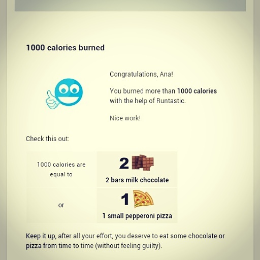 Até agora tem sido fraquinho, mas hoje recebi no e-mail a minha grande motivação: fui autorizada a comer uma pizza ou chocolate.