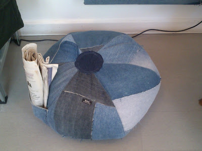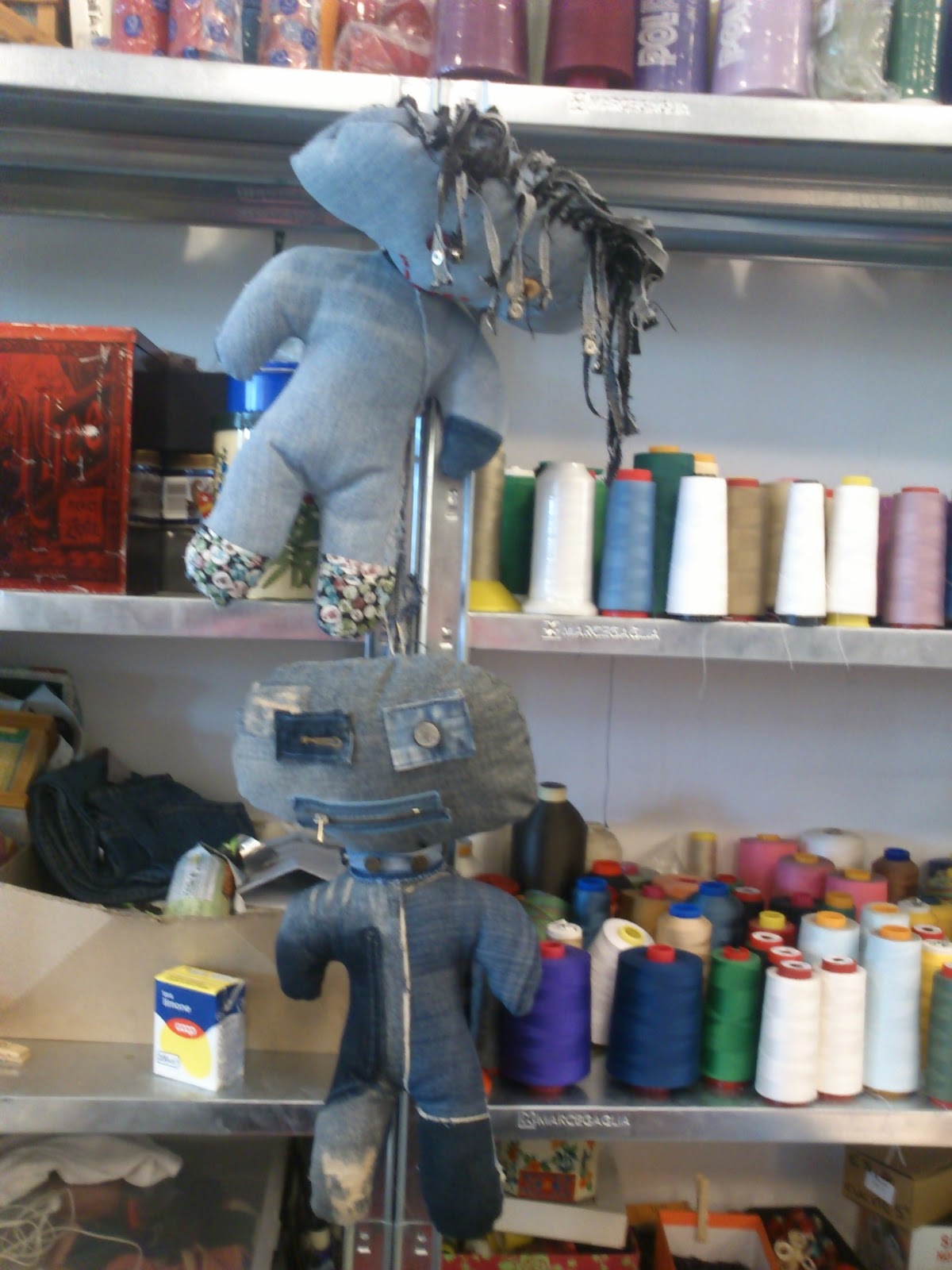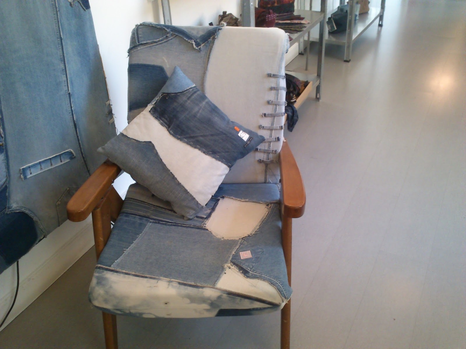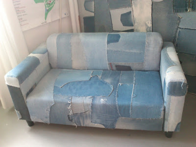 Primeiro as calças de ganga são desconstruídas, ou seja, pegam nelas e descosem-nas todas e de seguida começam a desenhar e fazer novas coisas, tão distintas como: sofás, bolsas, bonecos, quadros, puffs marroquinos (que estão muito na moda agora!), sacos de viagem, almofadas, vestidos lindos e até sapatos. Tudo feito de ganga!